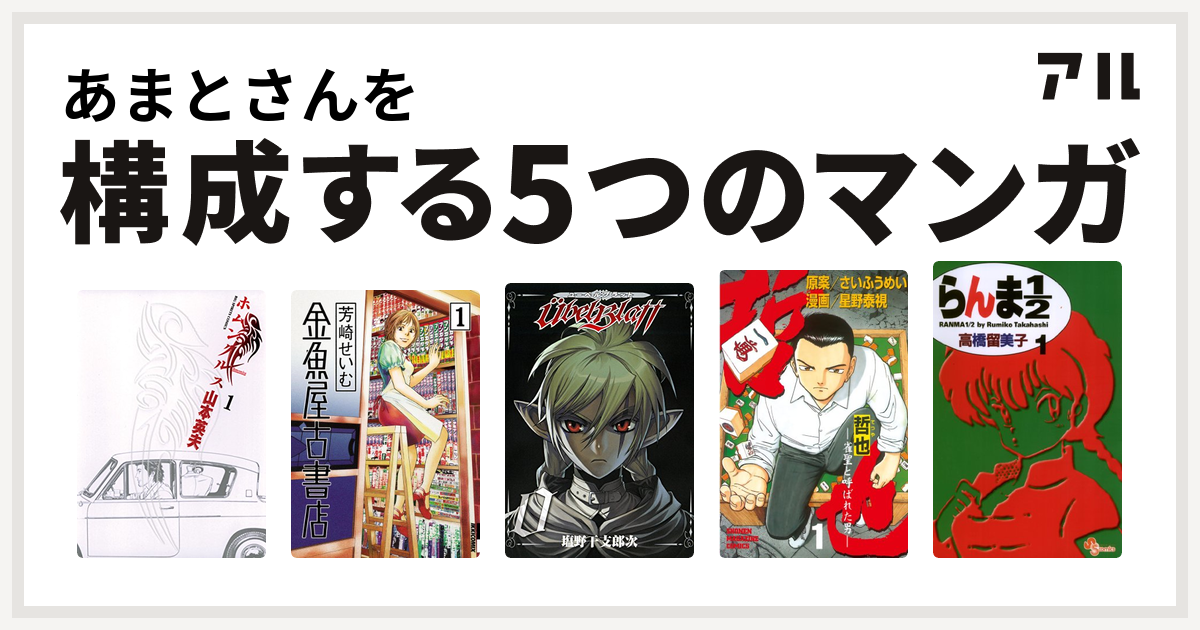 あまとさんを構成するマンガはホムンクルス 金魚屋古書店 Ubel Blatt ユーベルブラット 哲也 雀聖と呼ばれた男 らんま1 2 私を構成する5つのマンガ アル